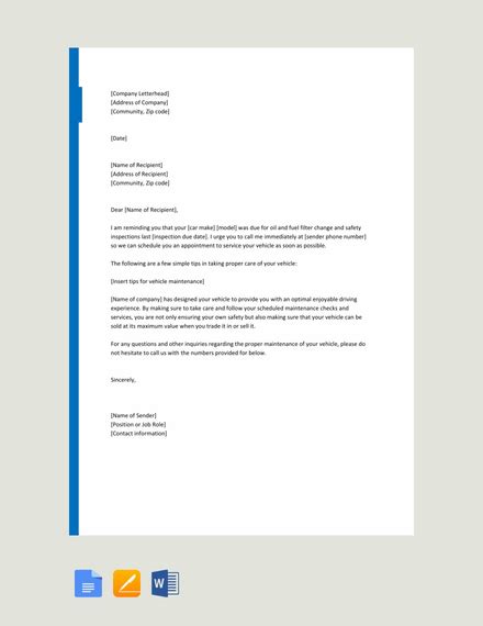 Read Online service reminder letter template PDF